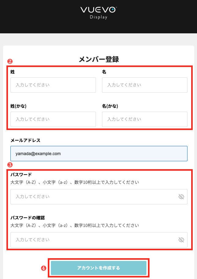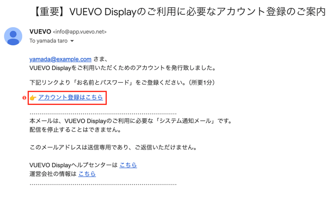 他のメンバーからVUEVO Displayに招待が行われると、メールが届きます。
