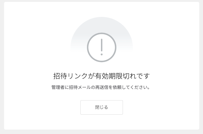※下記の画面が表示されましたら、貴社の管理者へご連絡ください。アカウント発行のメールが届いてから一週間が過ぎると、登録URLが無効になります。
