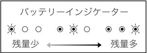 バッテリーインジケーター:3つのランプで充電状況を示します。