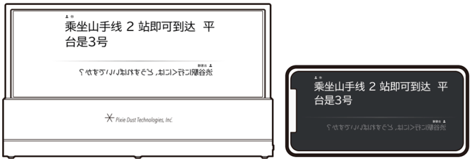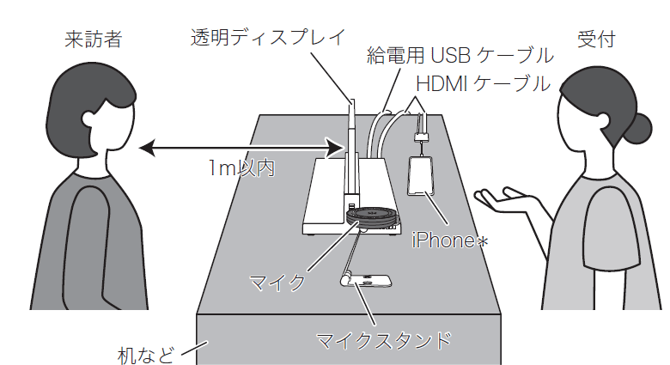 例:iPhone / iPadが会話画面の場合は、透明ディスプレイにも会話画面が表示されます。
