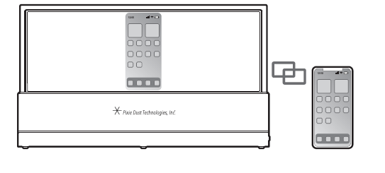 例:iPhone / iPadが設定画面やアップデート画面等の場合は、透明ディスプレイには待ち受け画面が表示されます。