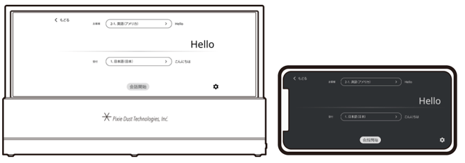 iPhone / iPadの画面が、待ち受け、言語選択、会話の場合は、透明ディスプレイには同じ画面が表示されます。iPhone / iPadが、ログイン画面や設定画面など、お客様には必要のない画面の場合は、透明ディスプレイには待ち受け画面が表示されます。