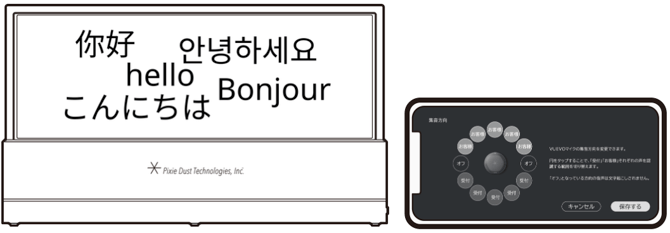 例:iPhone / iPadが言語選択画面の場合は、透明ディスプレイにも言語選択画面が表示されます。
