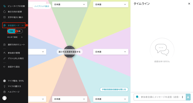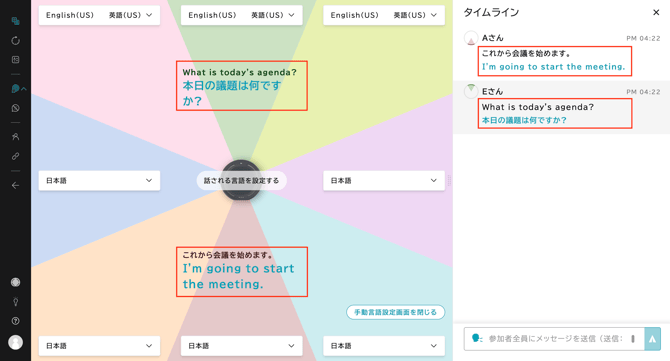 ※本機能は、2つの言語での会話を想定した表示となっています。