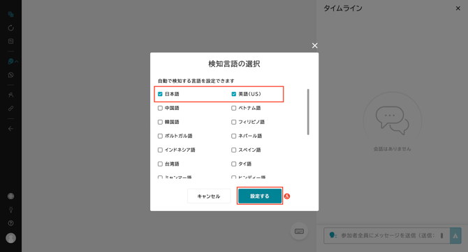 ❽検知言語を2言語選択し、「設定する」をクリックします。