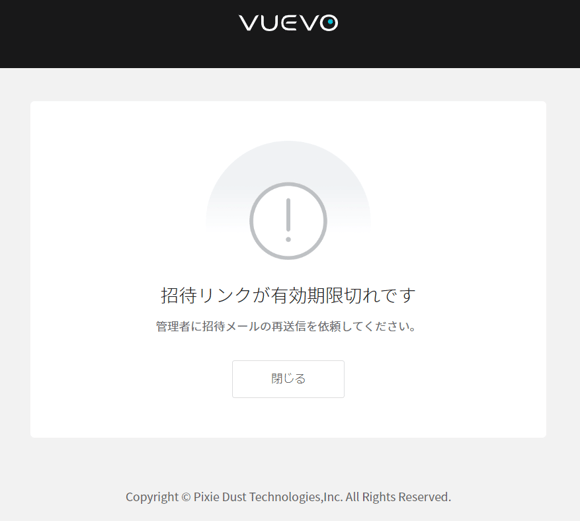 ※下記の画面が表示されましたら、貴社の管理者へご連絡ください。アカウント発行のメールが届いてから一週間が過ぎると、登録URLが無効になります。